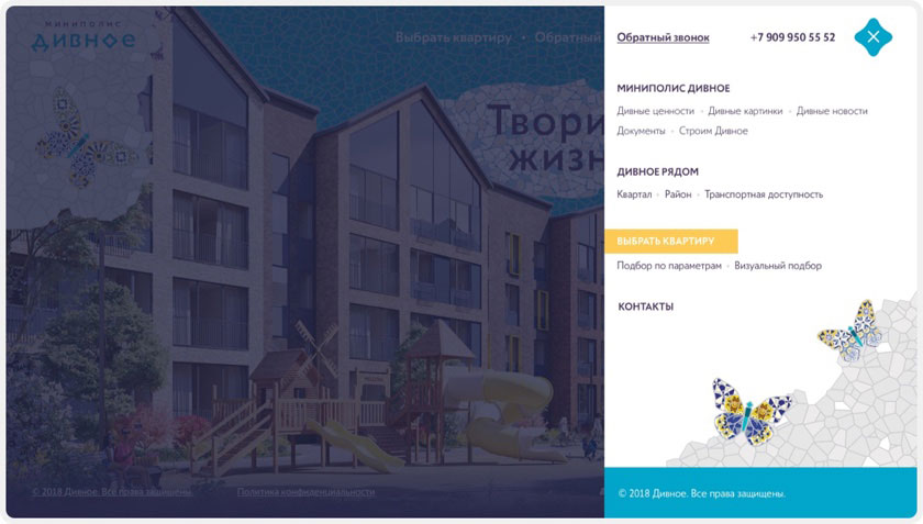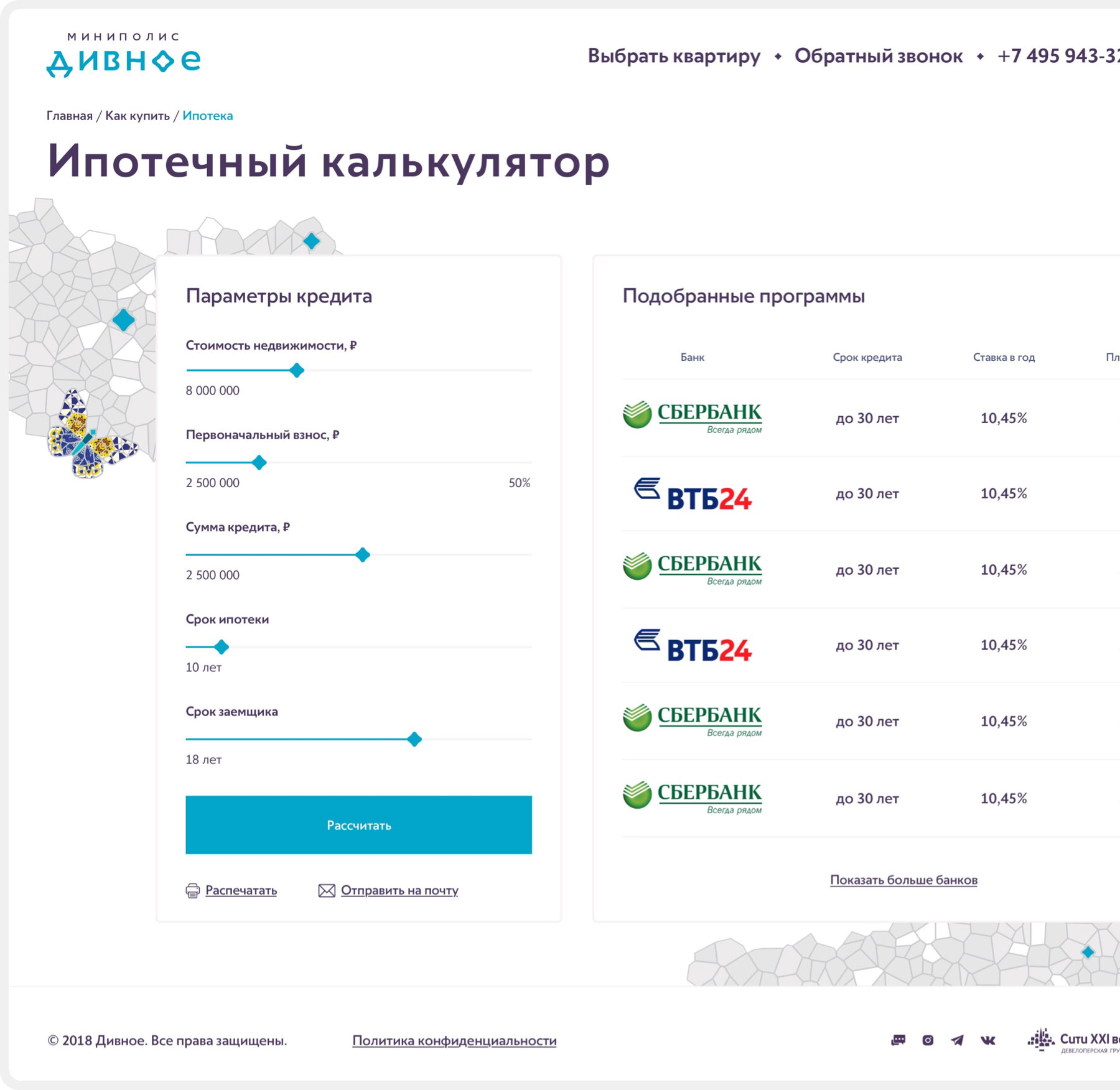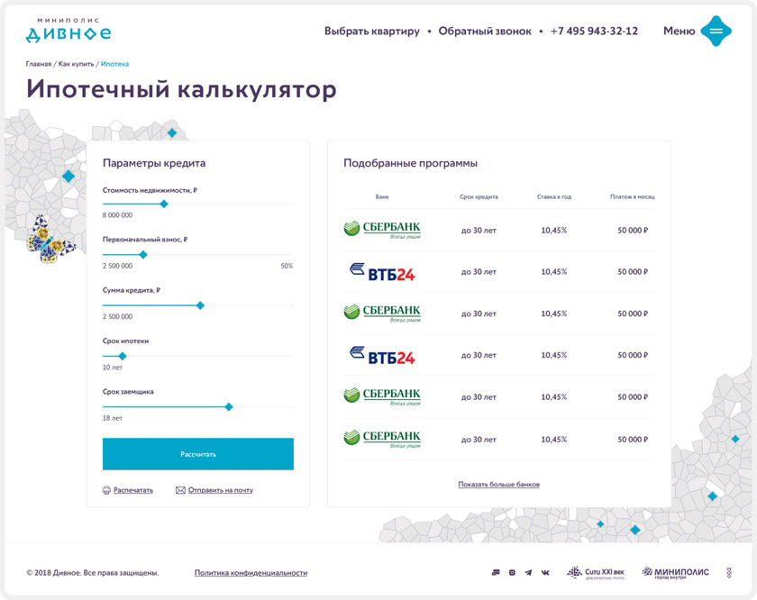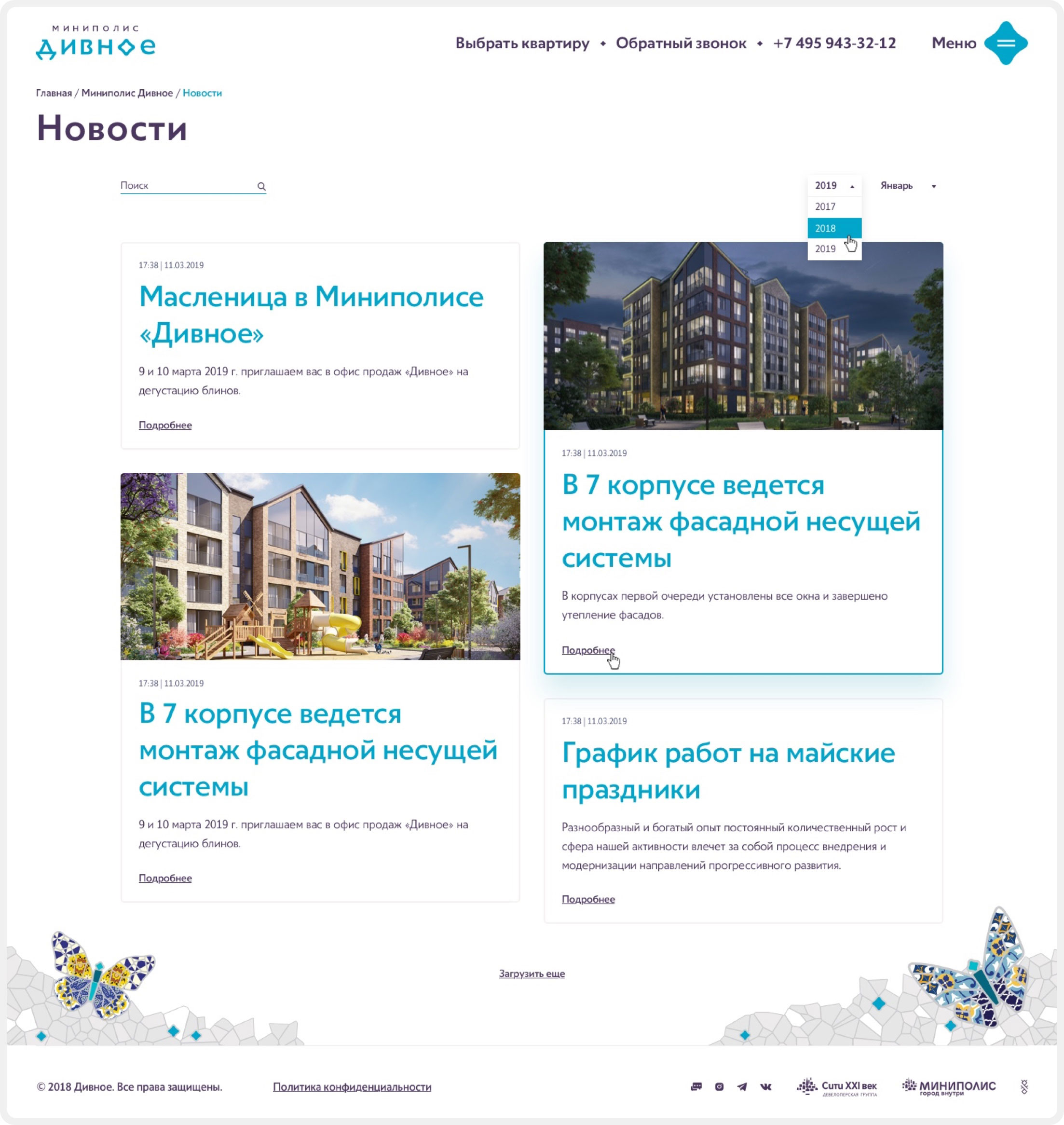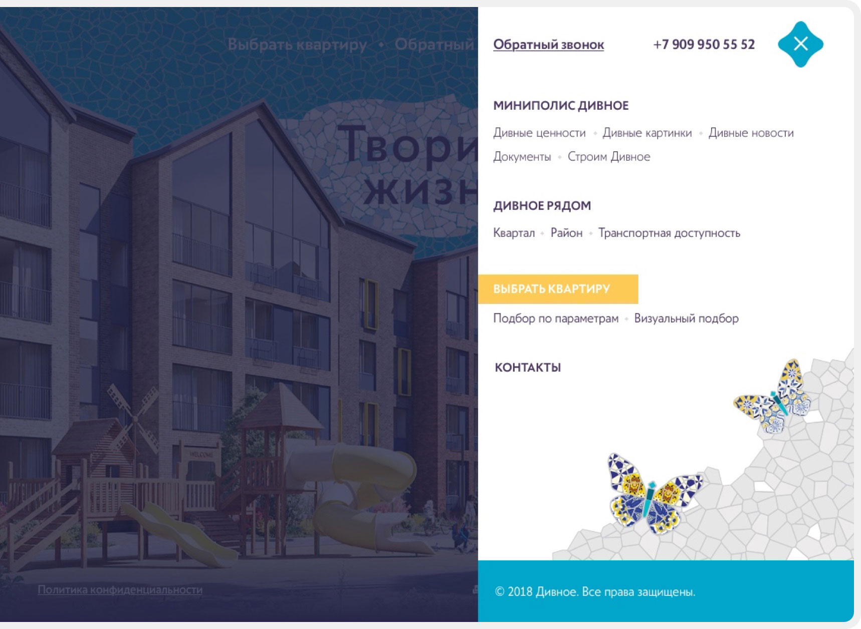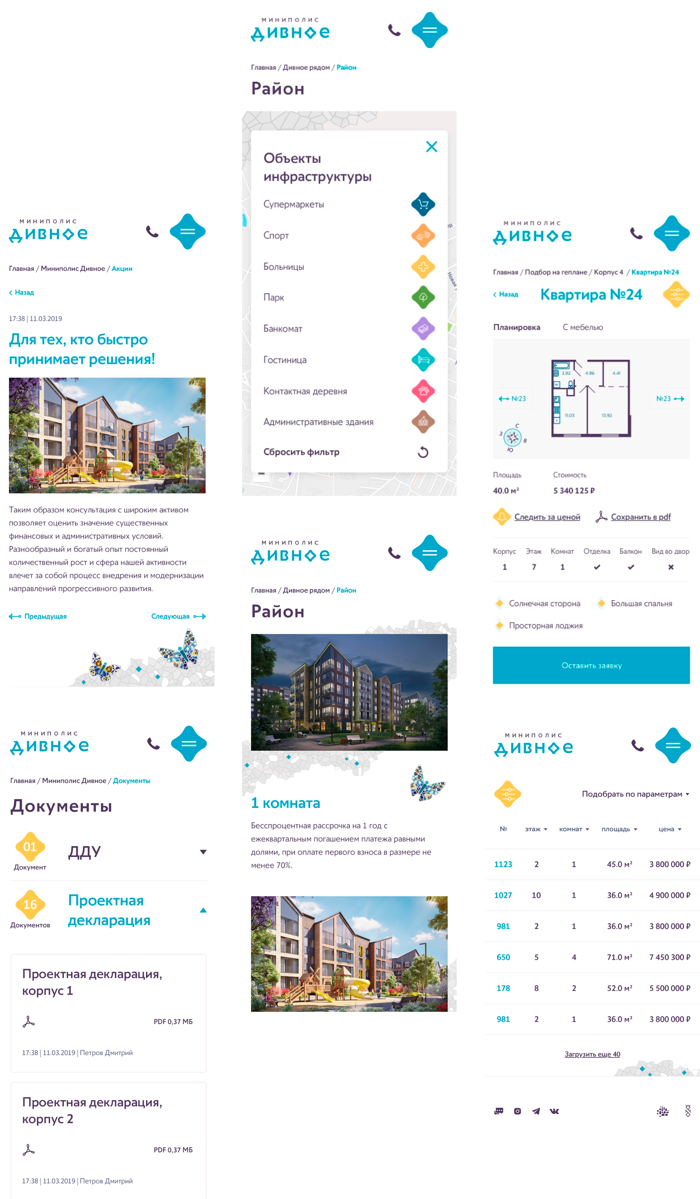 Выбор квартиры на сайте осуществаляется в два клика. Мы постарались, чтобы пользователь как можно быстрее достигал цели, уменьшив количество шагов до карточки квартиры.