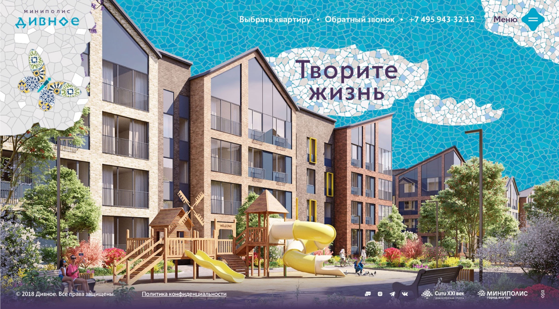 Идею миниполиса как творческого кластера, где каждый может стать яркой частью чего-то большего, передаёт техника мозаики. А её ключевым образом становятся бабочки.