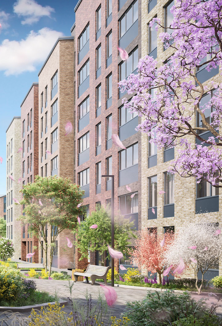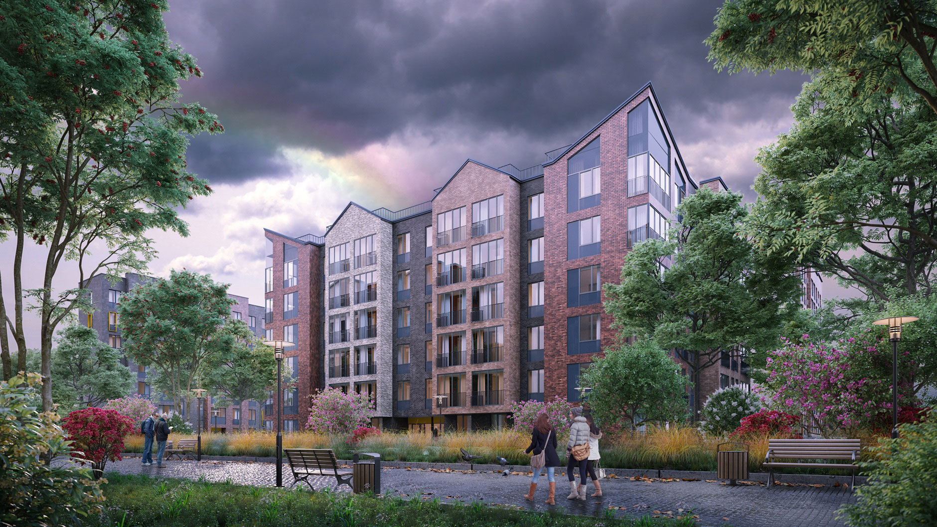 Наша команда разработала более 30 ярких и уникальных рендеров, которые передают настроение легкости, счастья и безмятежности. Здесь концептульная архитектура и зеленые дворы.