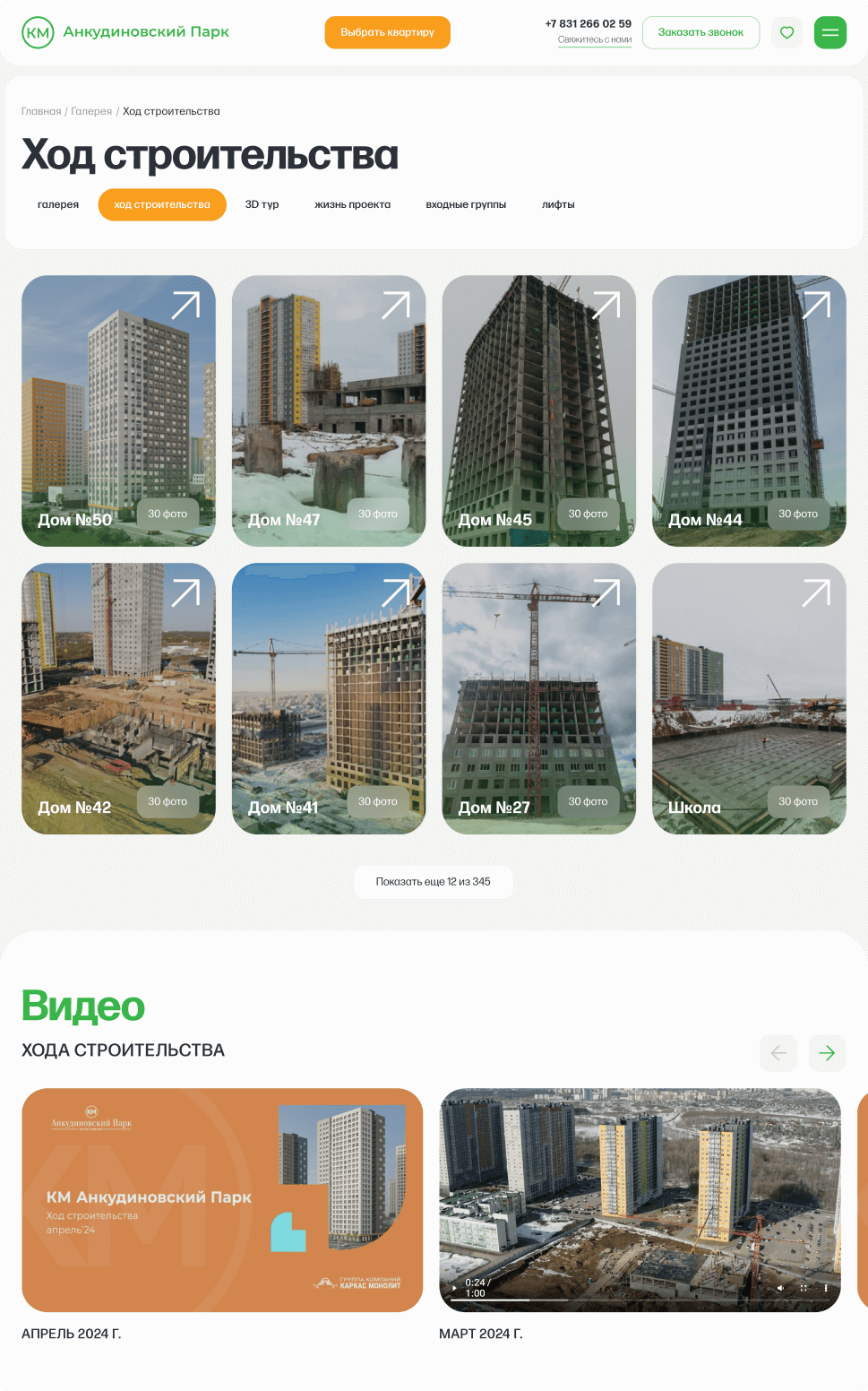 Контентные страницы знакомят пользователя с масштабами проекта и рассказывают о деятельности компании-затсройщика.