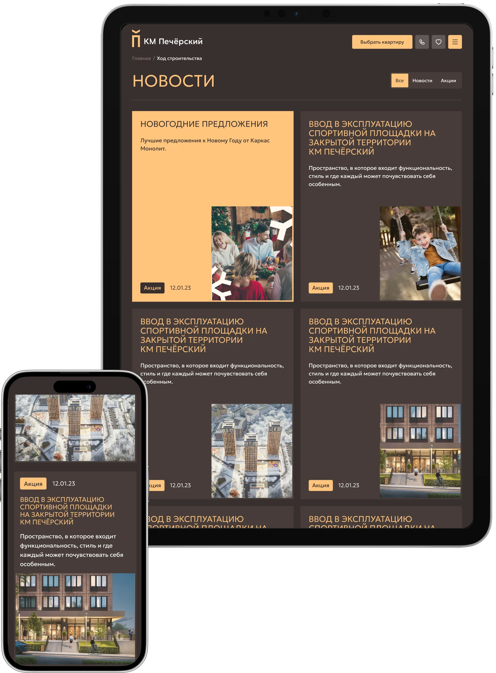Раздел «Новости» позволяет оперативно информировать пользователей о завершении строительных работ, запуске новых удобств, специальных предложениях и акциях, что создает ощущение вовлеченности и доверия у жильцов.