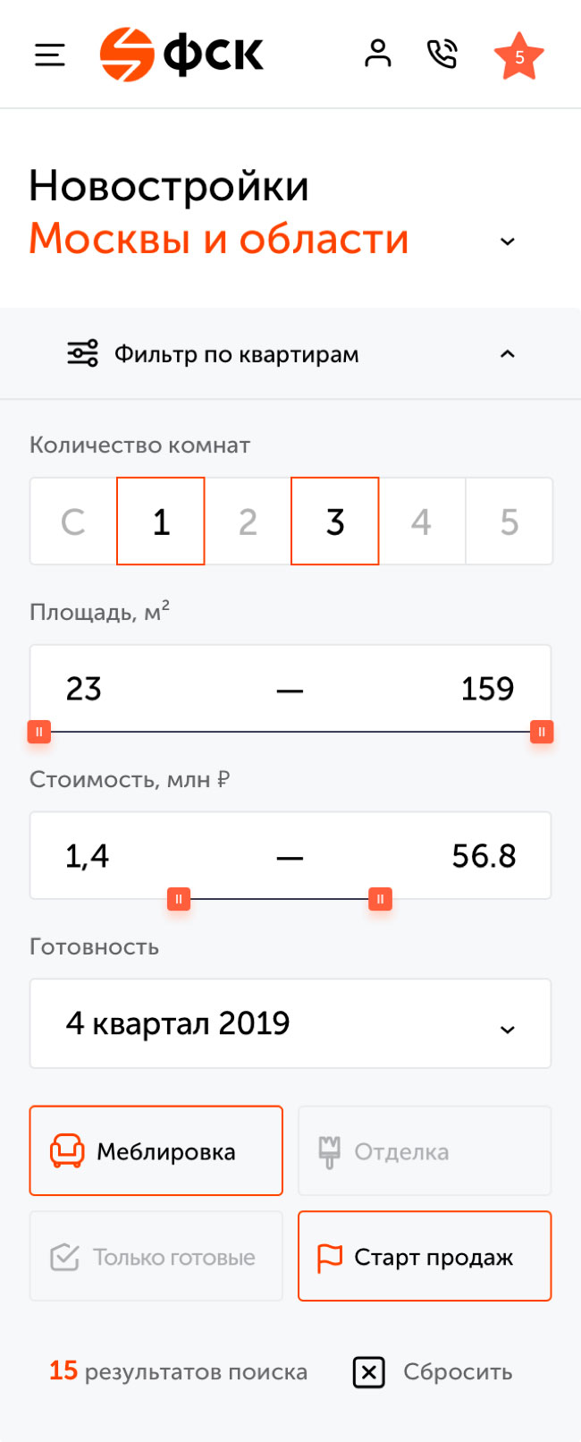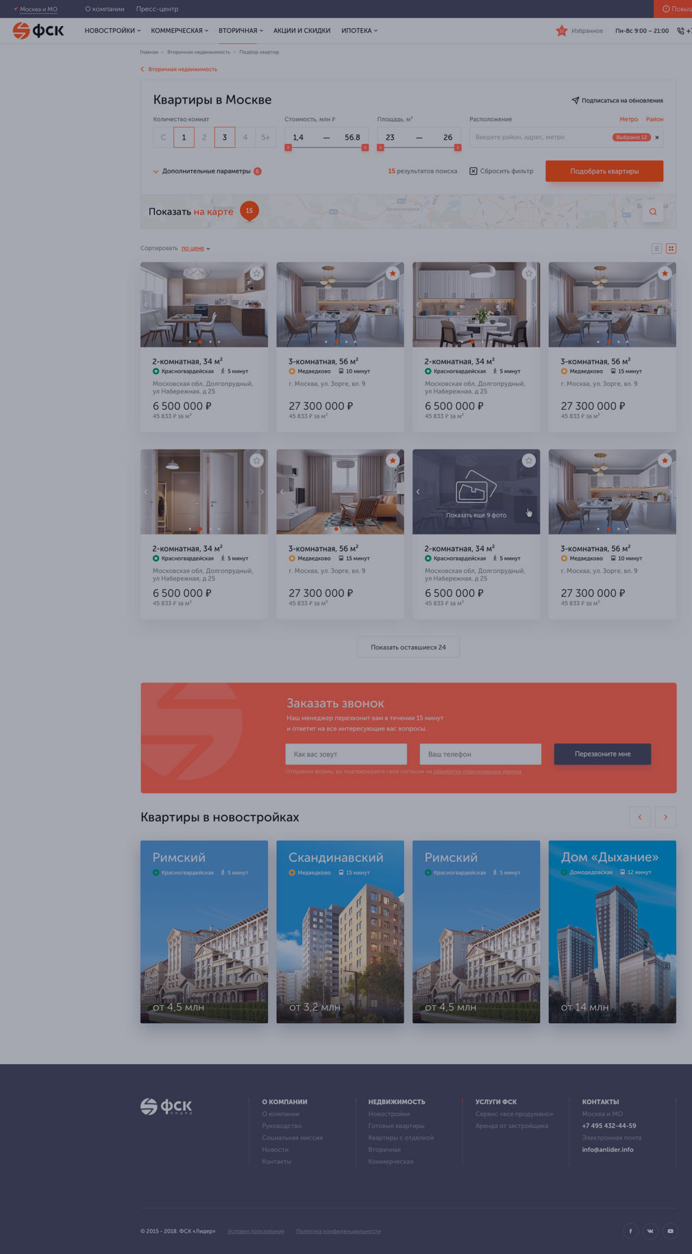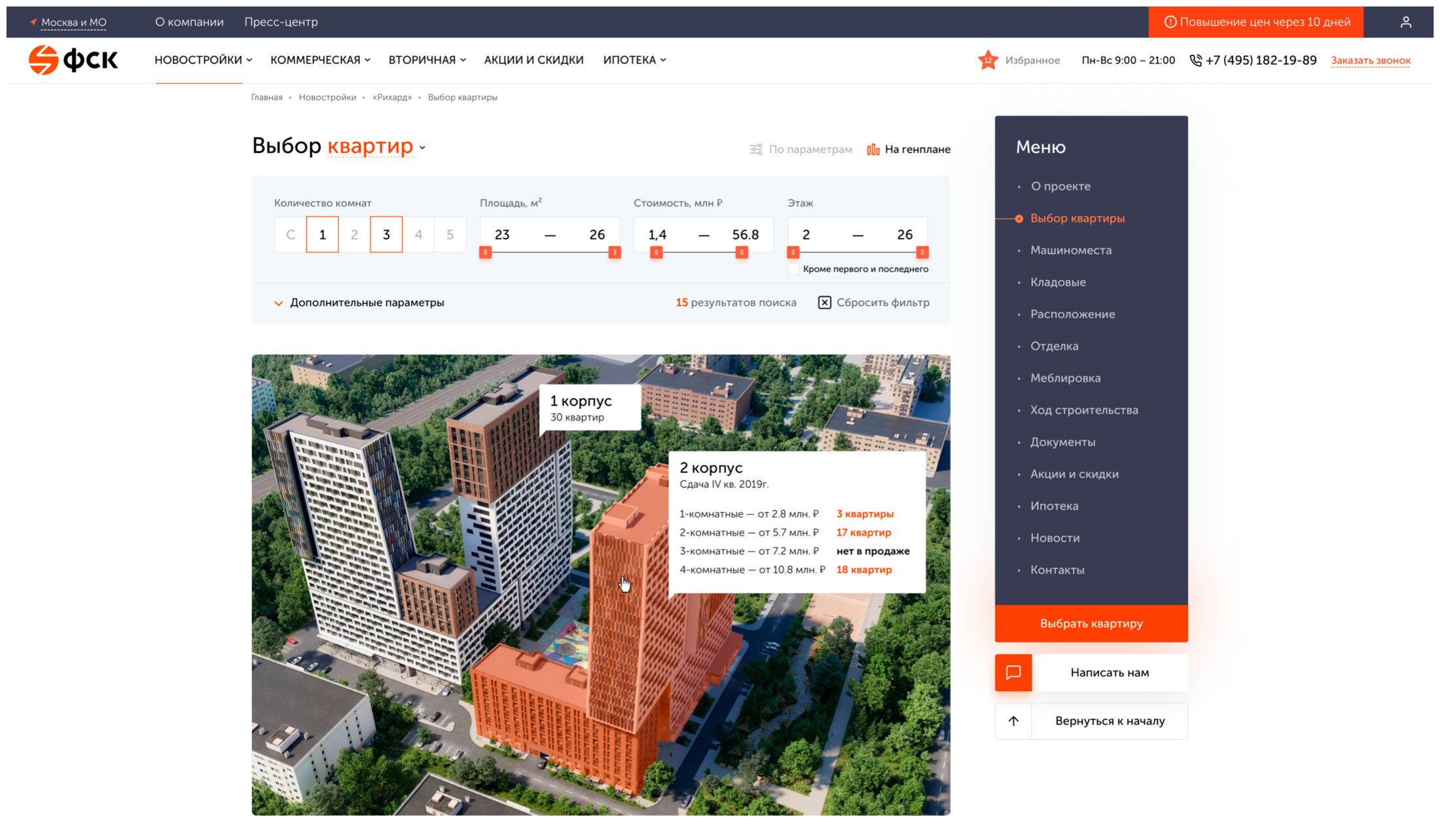 Являясь крупным агрегатором, сайт ФСК должен предоставлять информацию о более чем 30 ЖК в удобной для пользователя форме.