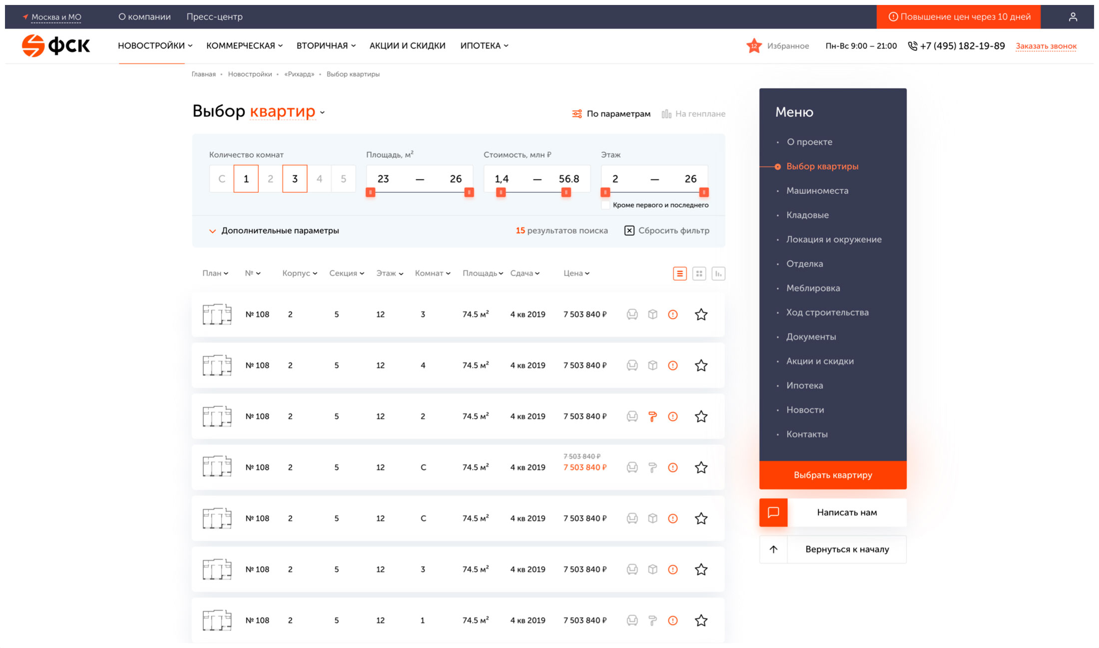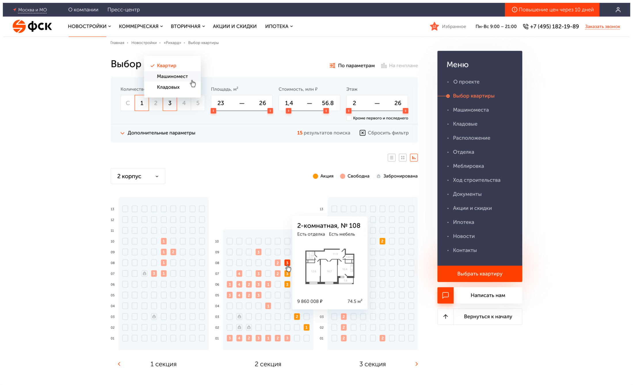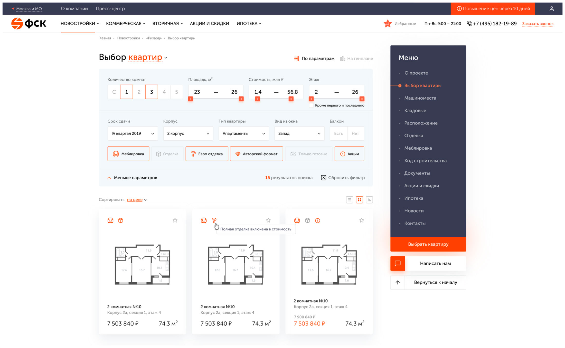 Являясь крупным агрегатором, сайт ФСК должен предоставлять информацию о более чем 30 ЖК в удобной для пользователя форме.