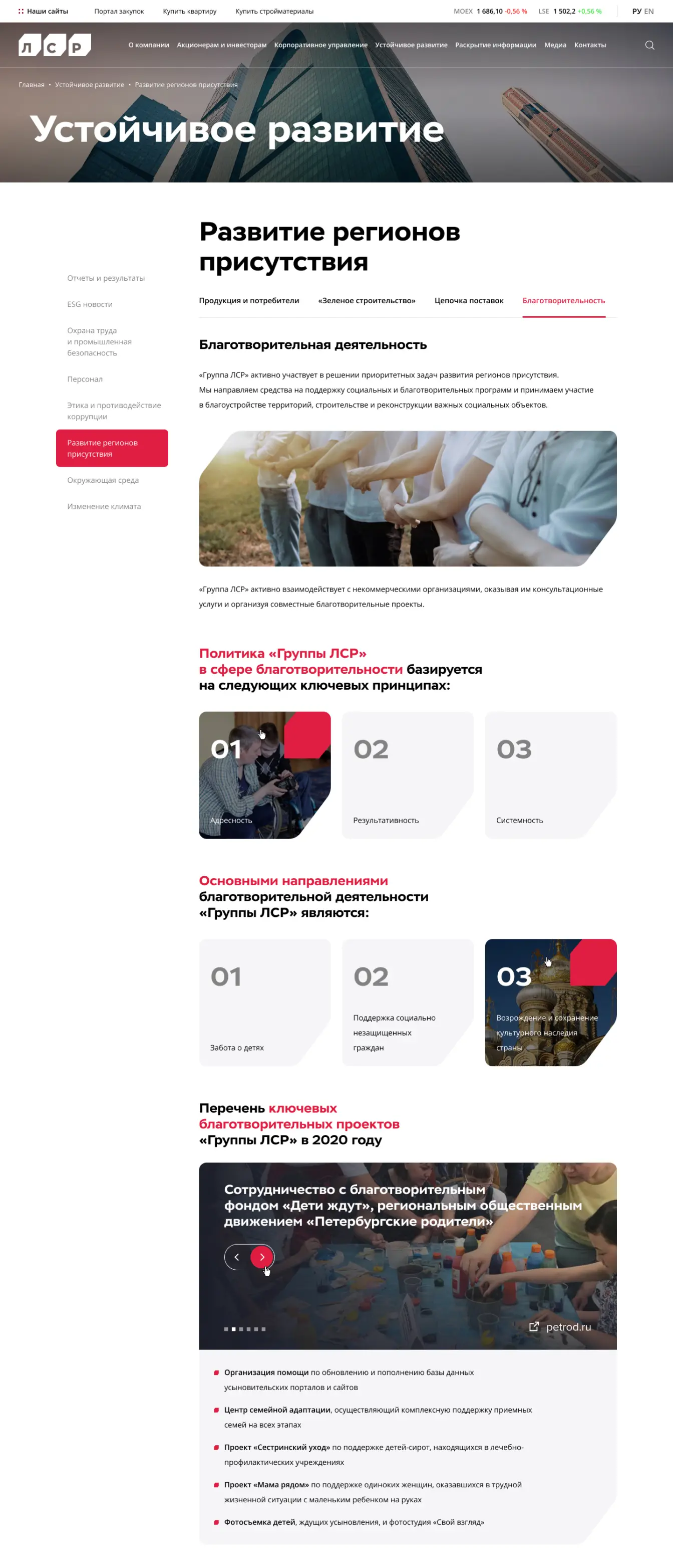 Общественная и благотворительная деятельность компании подробно отражена на сайте.