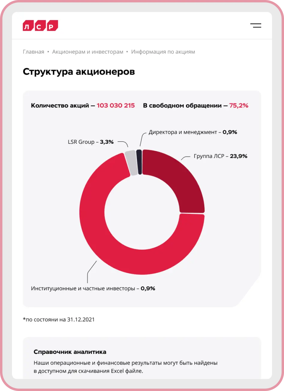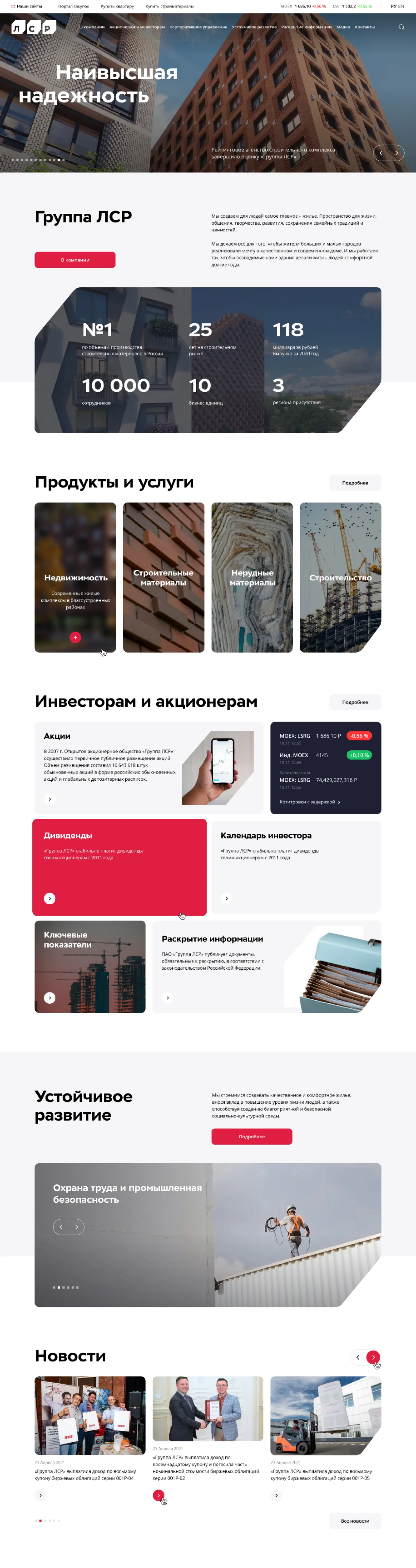 Компания «Группа ЛСР» работает в сфере производства стройматериалов, девелопмента и строительства недвижимости с 1993 года, являясь одним из ведущих застройщиков России.