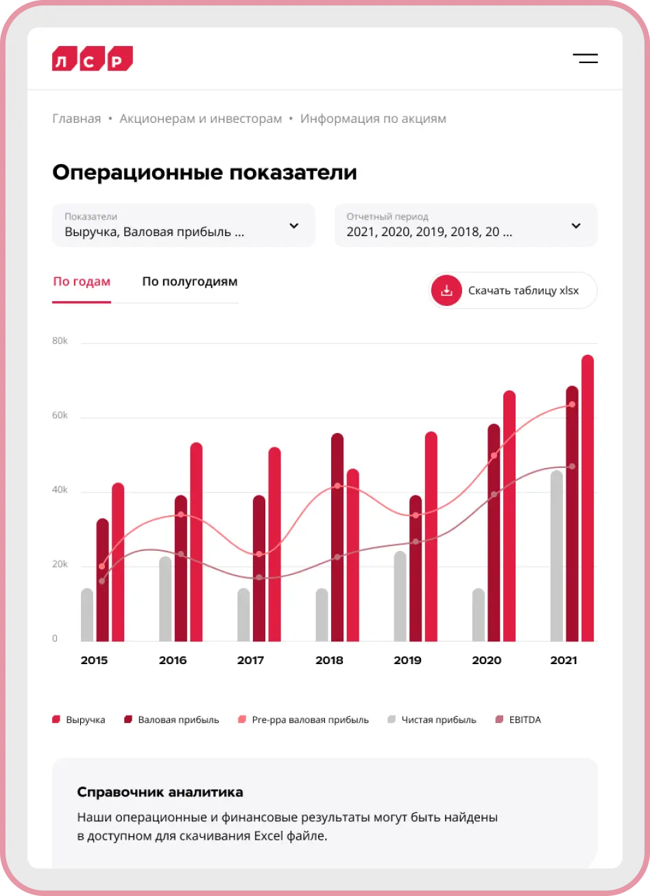 Для потенциальных инвесторов и акционеров собрана подробная аналитика финансовой деятельности компании за все время ее существования.