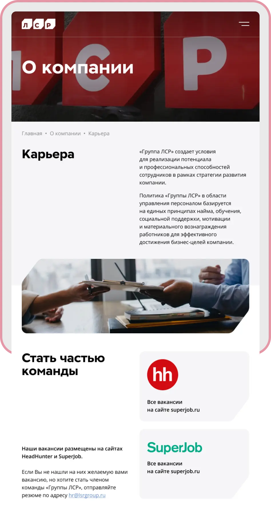 На сайте собрана вся необходимая информация о компании и ее подразделениях в различных регионах России. На сайте можно познакомиться со всеми направлениями деятельности Группы ЛСР и узнать подробнее о каждом из них.