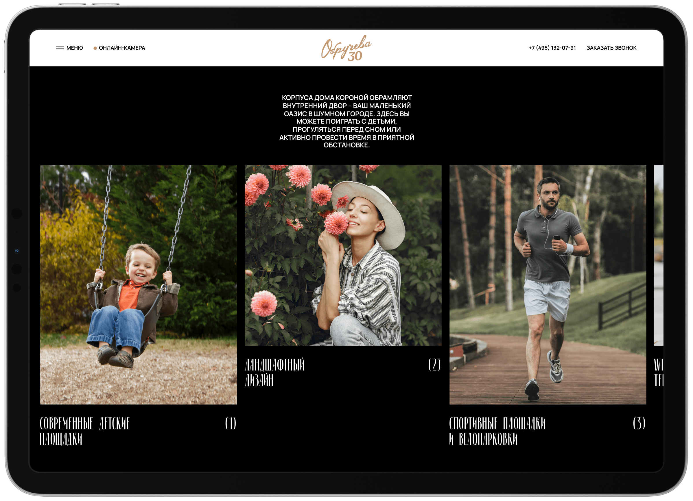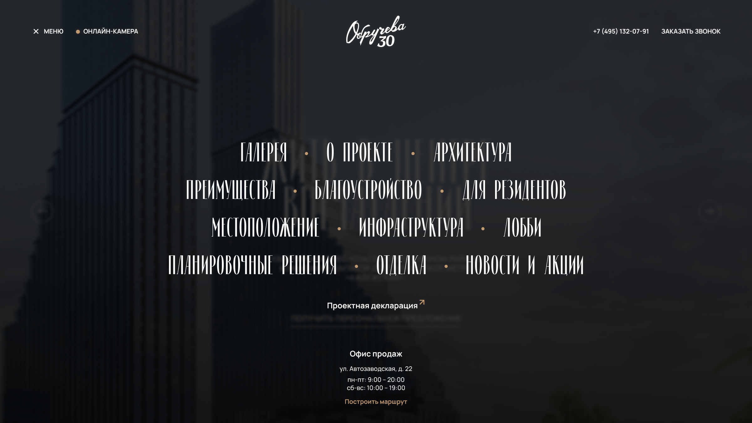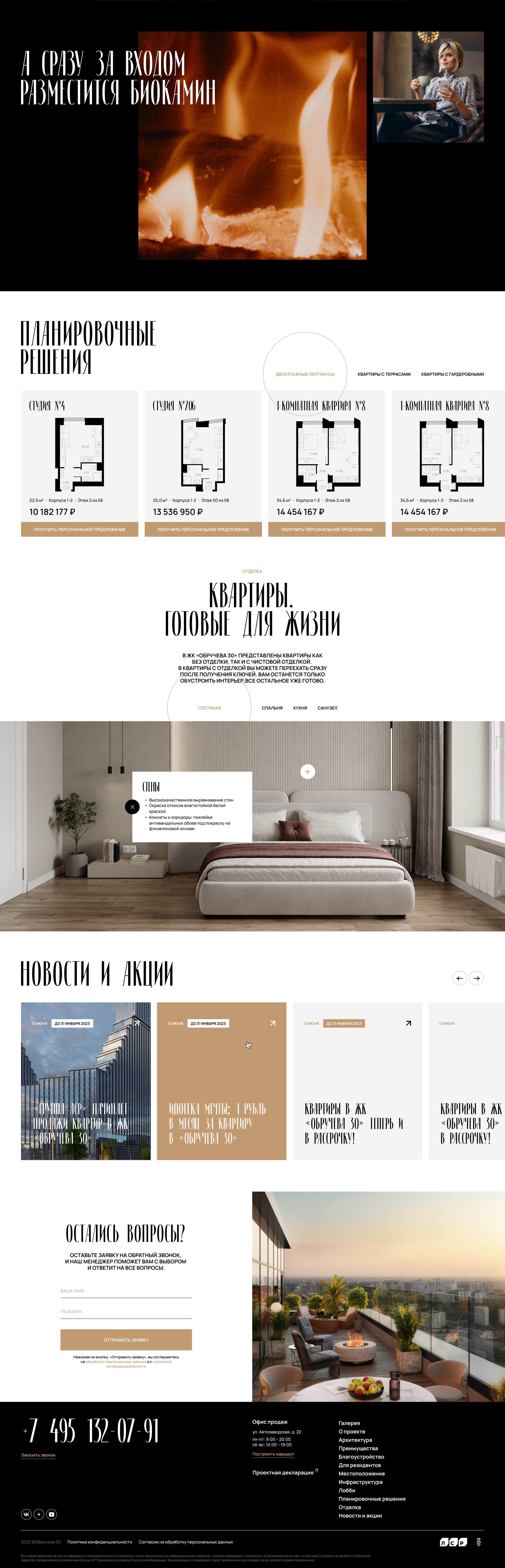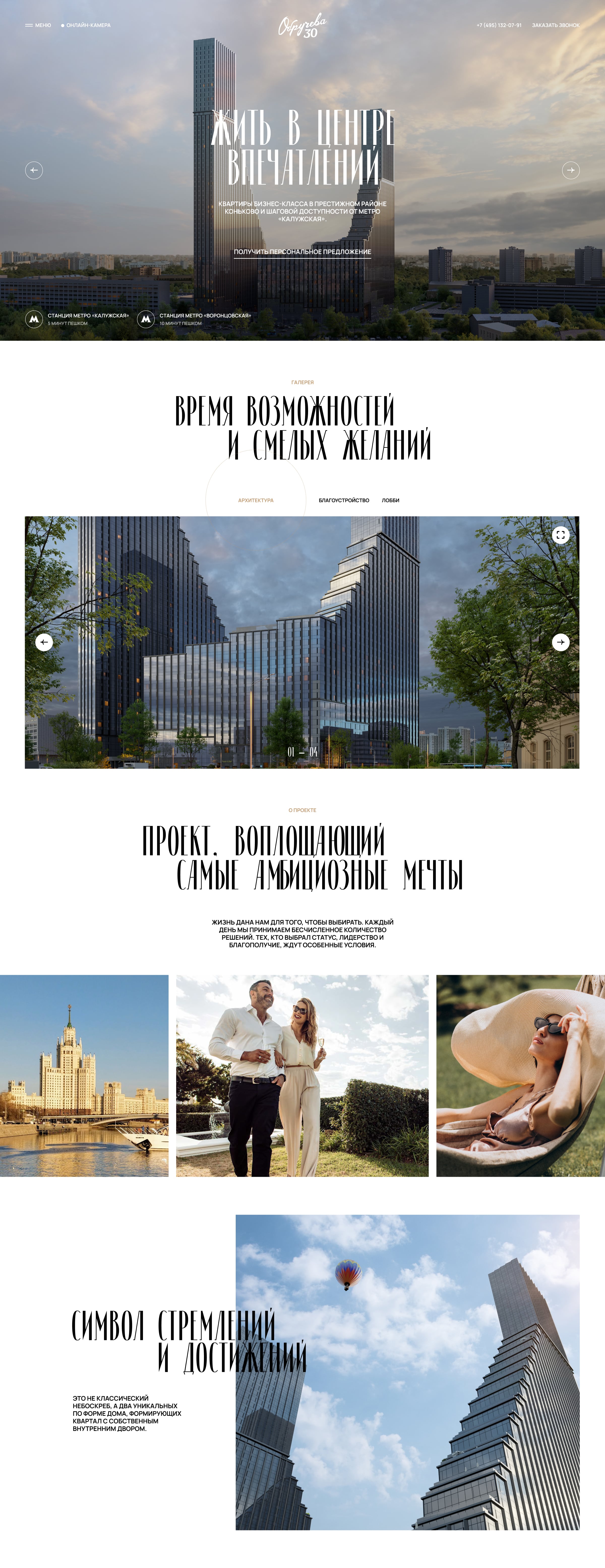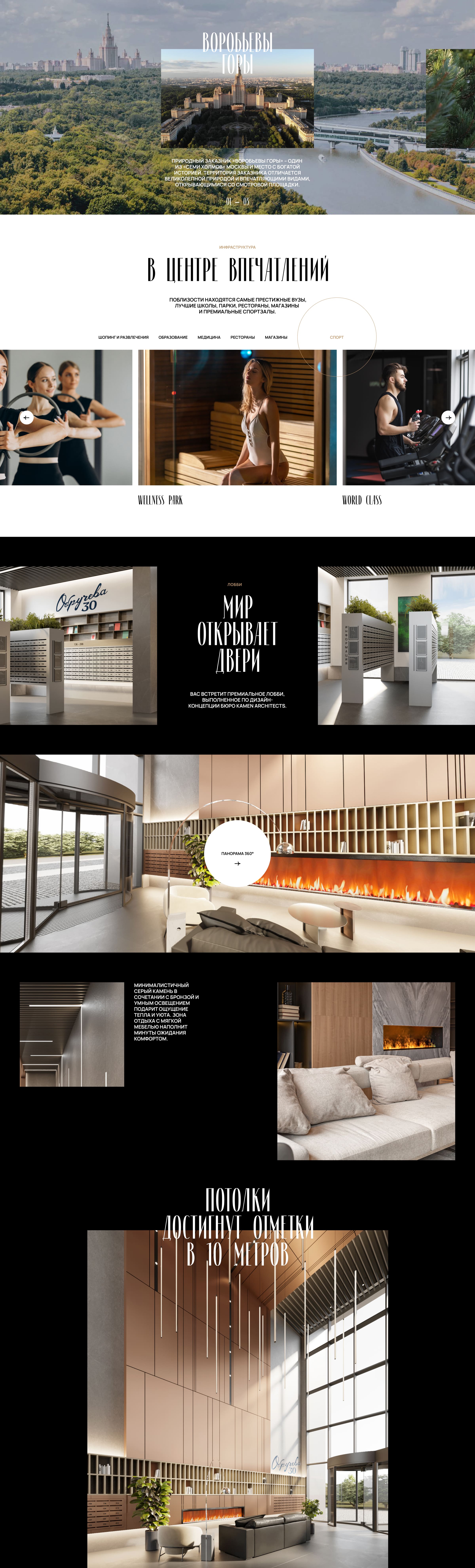 Мы разработали промо-сайт для жилого комплекса «Обручева 30», который строится в Москве. В процессе поиска визуального решения мы нашли вдохновение в первую очередь в самом архитектурном исполнении проекта. Поэтому в основу промо-сайта легла чистая, минималистичная сетка, простые и понятные человеку геометрические формы. Мы задействовали как можно больше воздуха в композиционных блоках, чтобы подчеркнуть чистые формы и линии небоскребов проекта «Обручева 30».