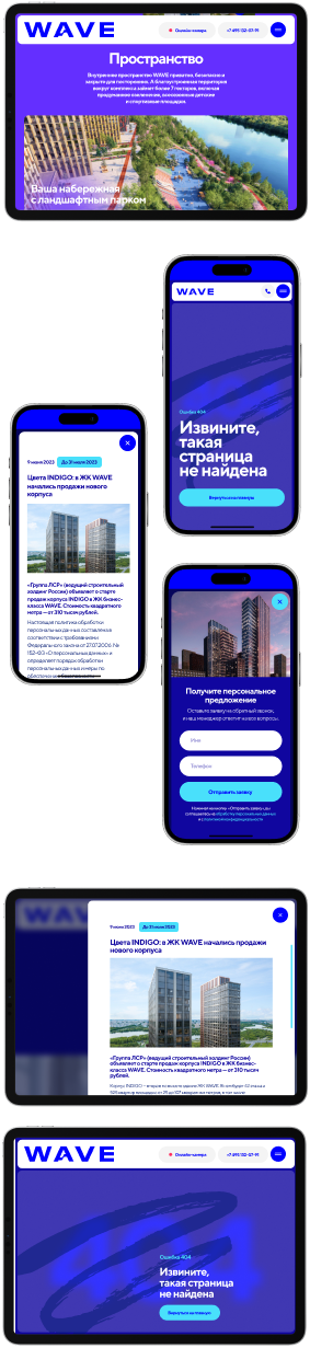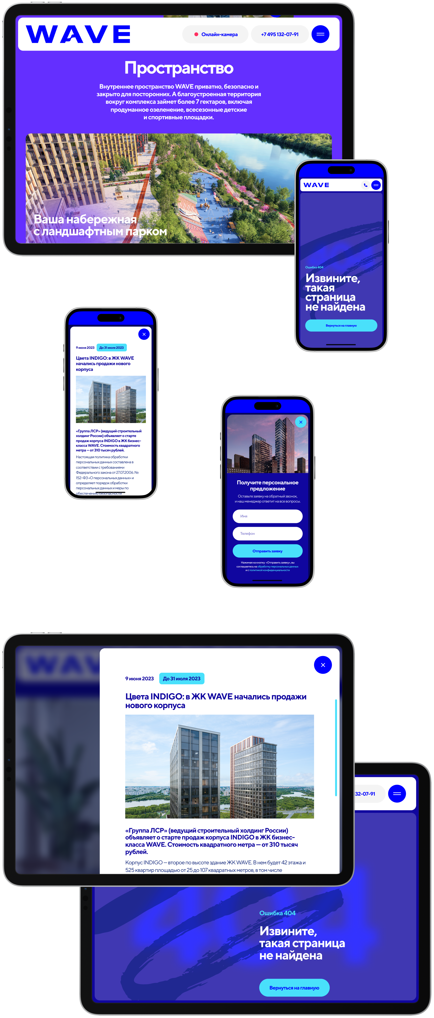 Мы учли, что пользователи могут использовать разные устройства при просмотре лендинга WAVE. Страница полностью адаптивна и доступна для просмотра со всех мобильных устройств и планшетов.