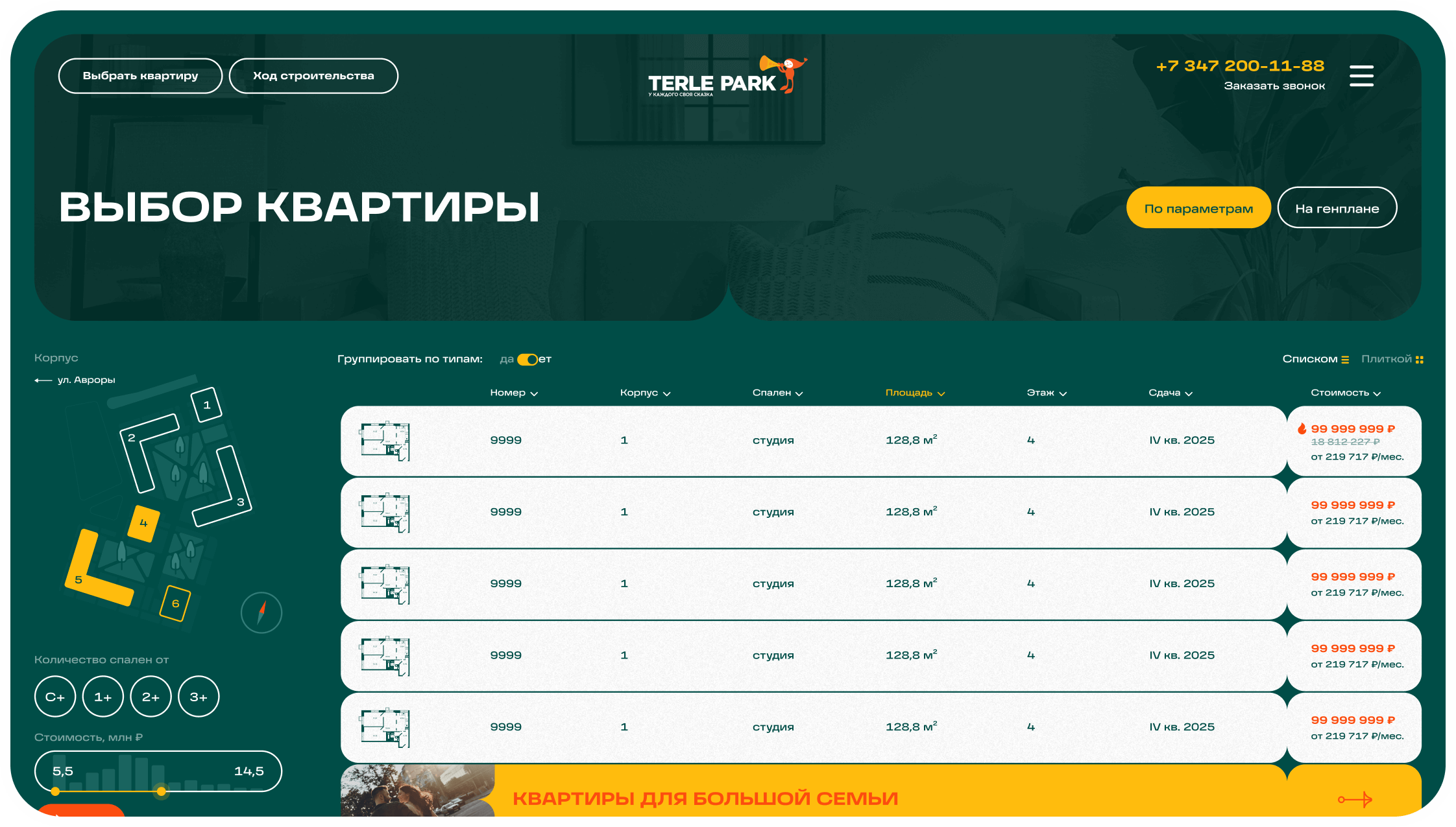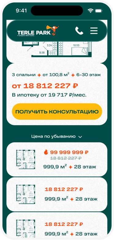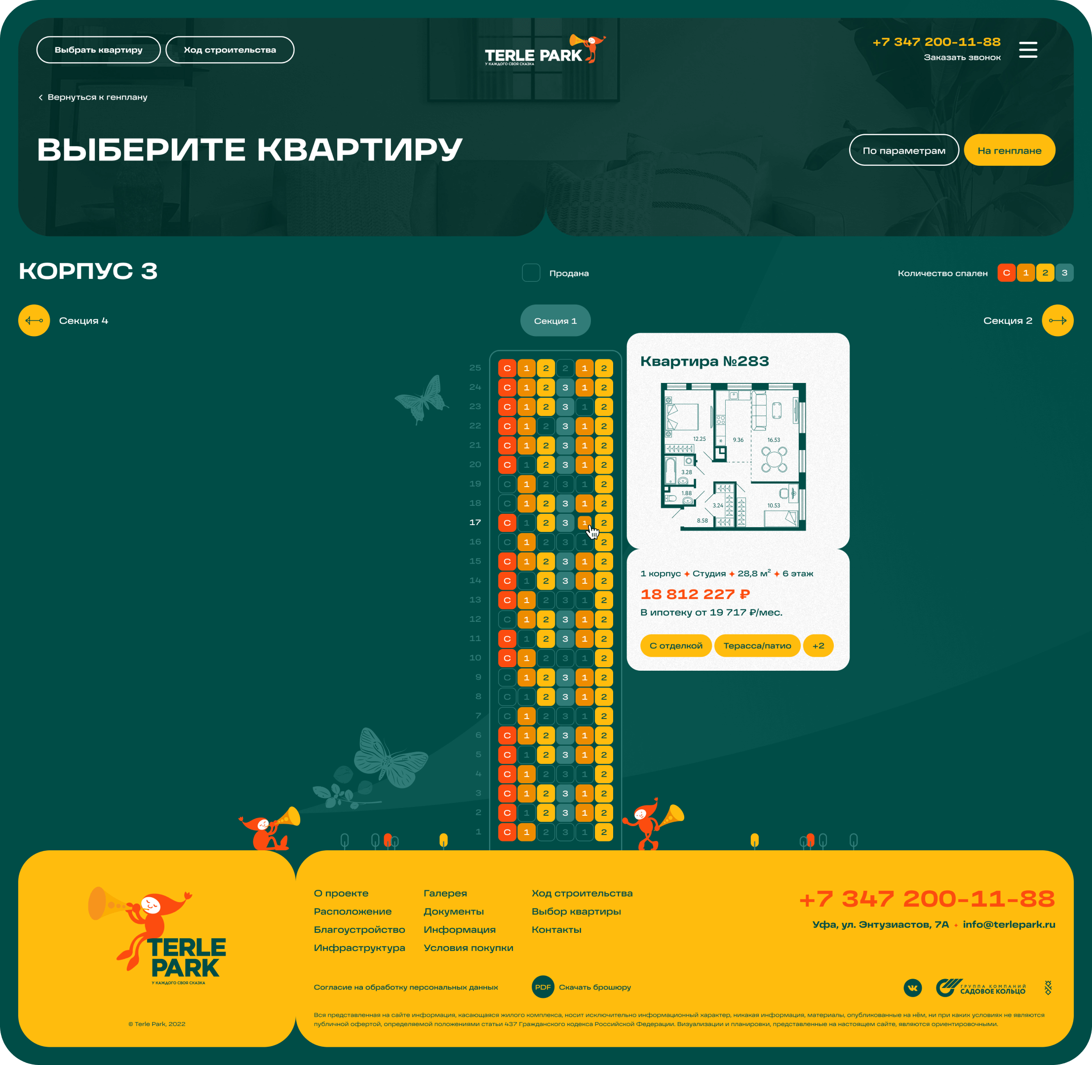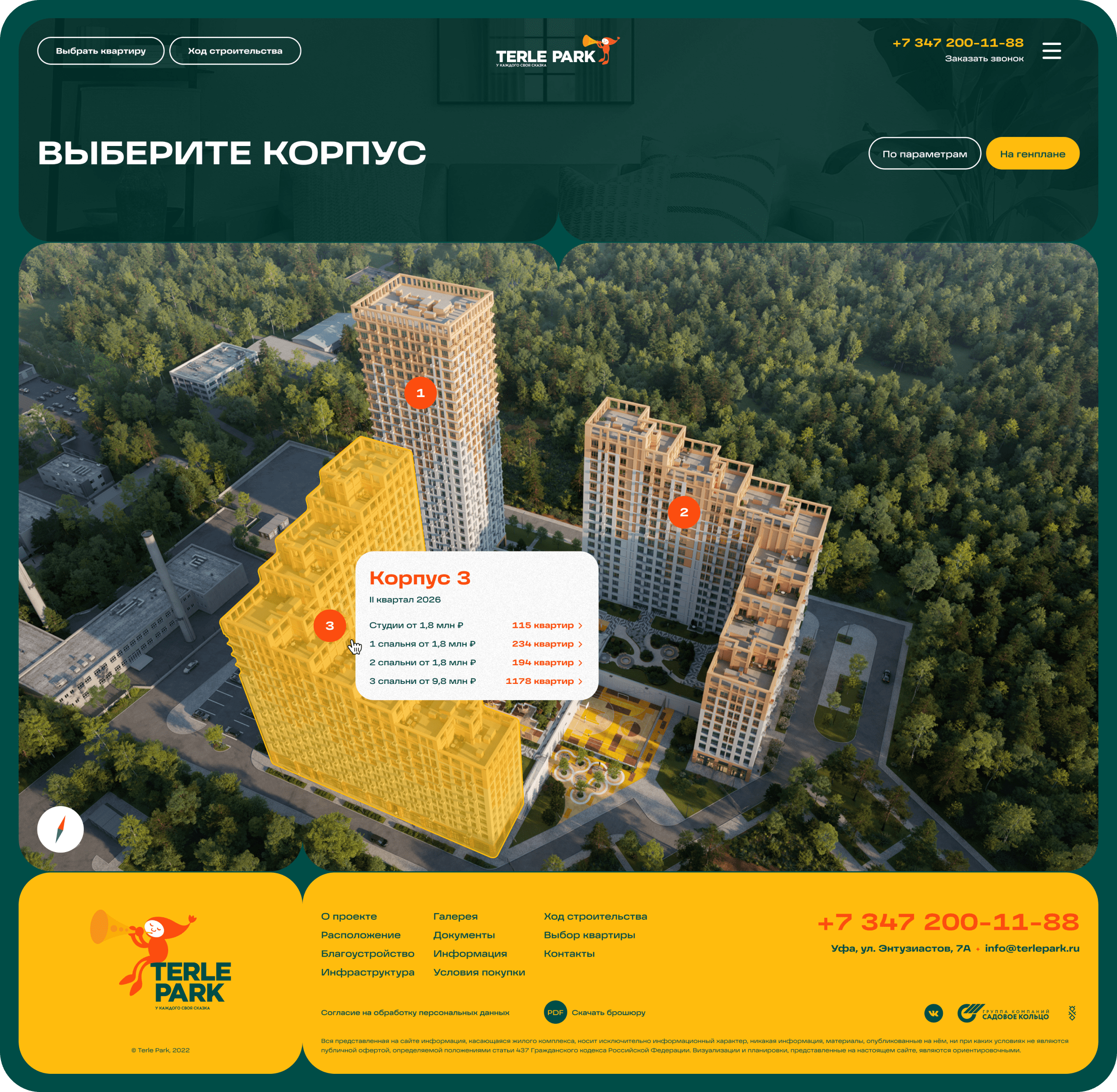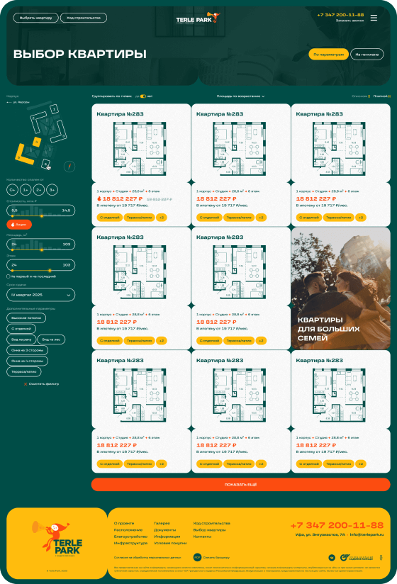 Основная цель сайта – провести пользователя через процес покупки недвижимости. В разделе поиска квартир по параметрам есть все необходимое для комфортного выбора.