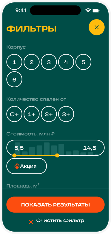 Помимо поиска по параметрам, был реализован поиск на генплане для большей наглядности.