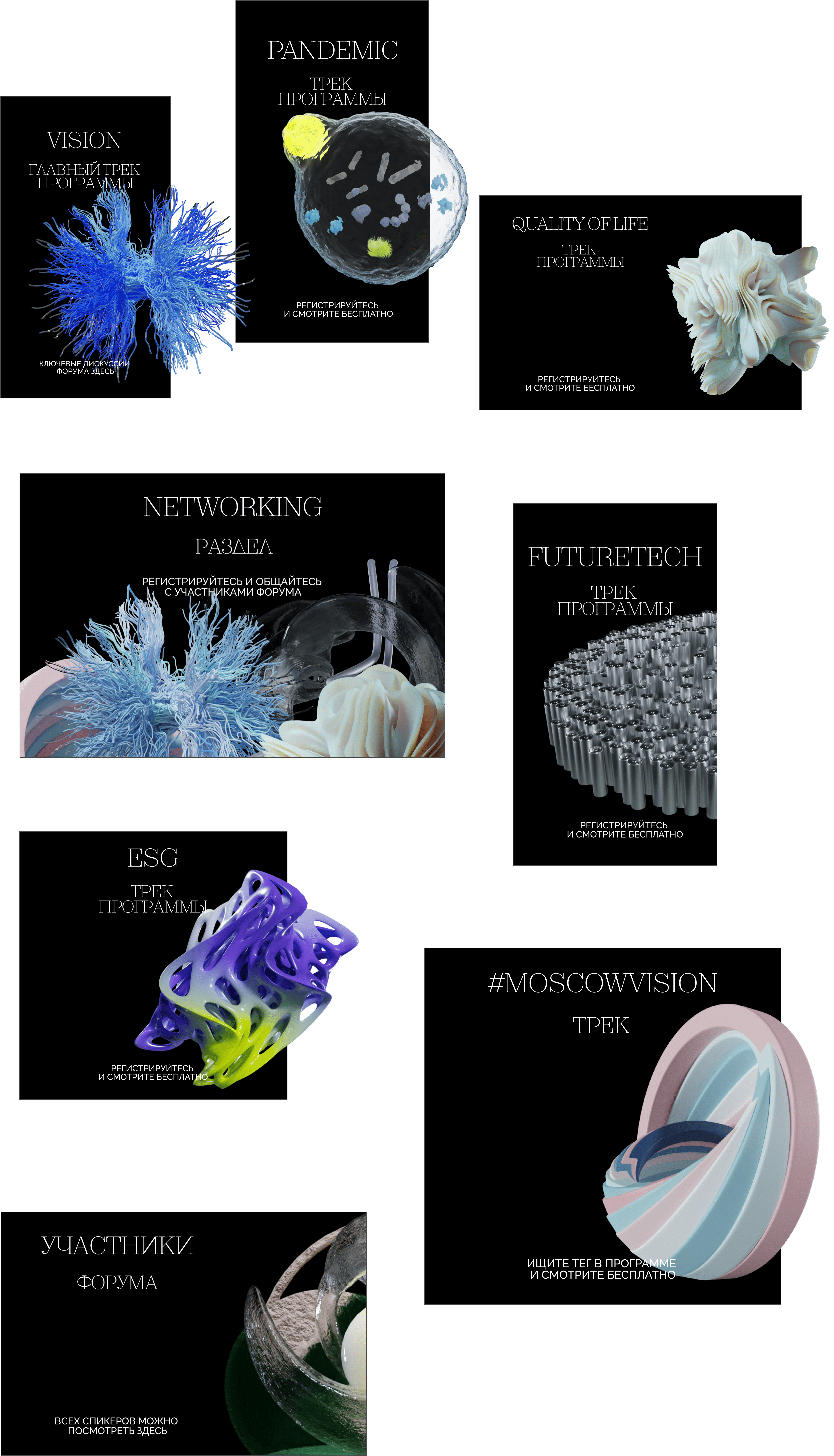 Для каждой темы форума мы подготовили уникальный визуал, выстраивающий связь с аудиторией